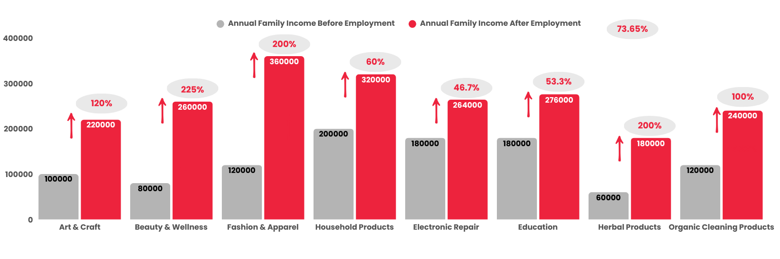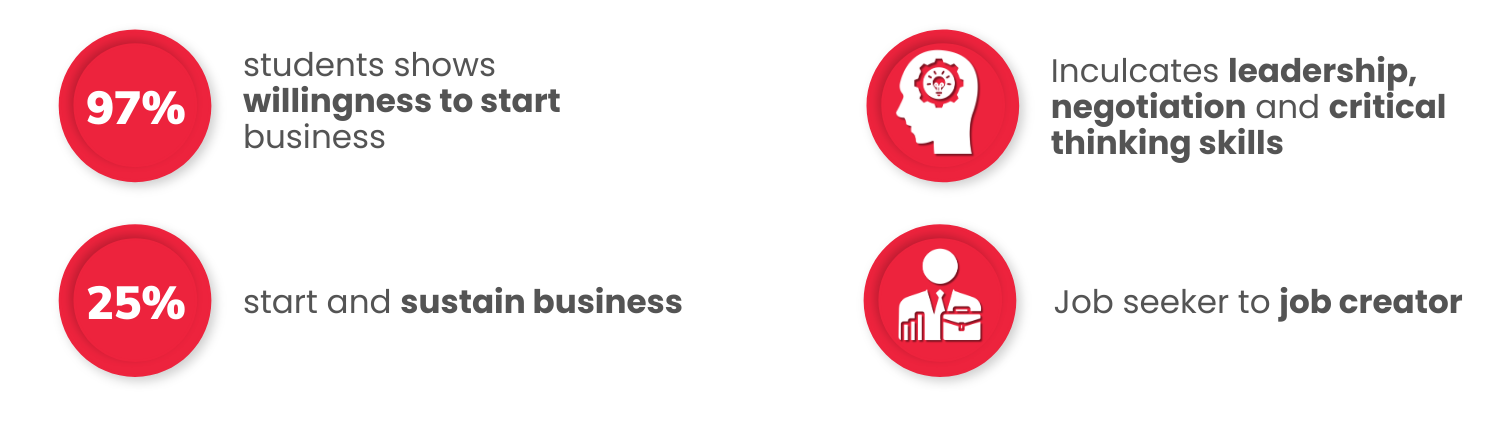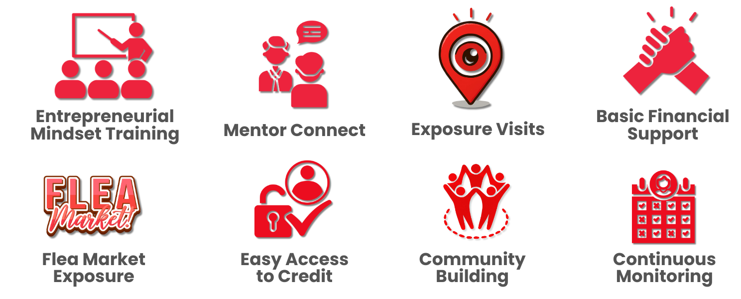 The Entrepreneurship Program, with a focus to support marginalised youth to start and scale micro- and nano-enterprises. It equips them with an entrepreneurial mindset, strengthens leadership skills, and provides access to credit, mentorship, and ongoing support.